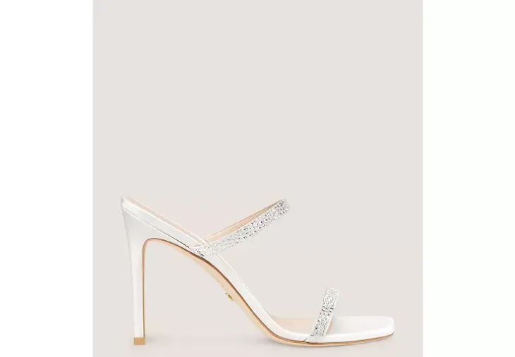 The ALEENA ROYALE 100 SANDAL further elevates our red-carpet ALEENA sandal design by way of glamorous, hand-placed crystal embellishments. Crafted by our artisans in Spain, this two-strap slide nods to our signature naked sandal look and features a precisely constructed 100-mm stiletto heel that does not sacrifice comfort.