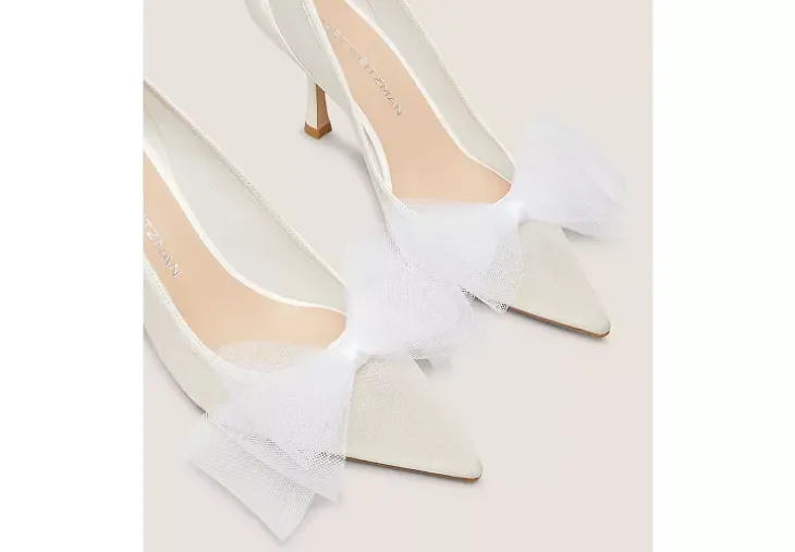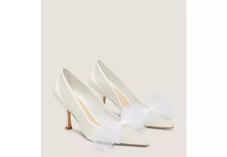 Celebrate forever in style with the BLUSHING BOW 75 PUMP. Crafted by SW artisans in Spain, this pointed-toe design is part of our bridal Blushing Bow Capsule Collection, a range of elegant silhouettes featuring dreamy mesh bow accents that can be adjusted to create a more voluminous effect. It is finished with a sculptural 75-mm stiletto heel that’s strategically placed for wear-all-day, dance-all-night comfort.