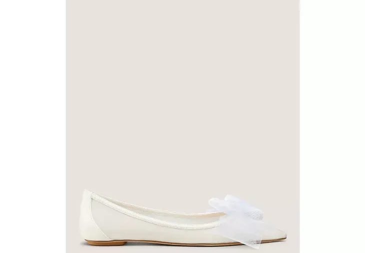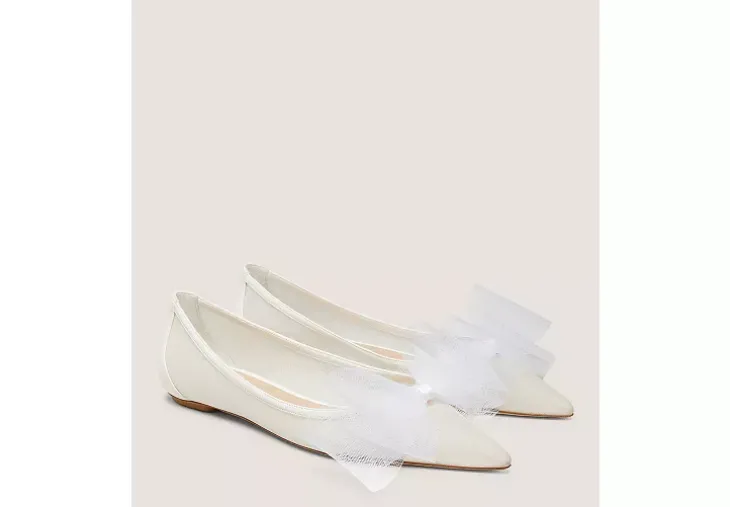 The BLUSHING BOW FLAT delivers the elegance of a pump and the wearability of a flat, all at once. Keep the celebrations going in style and comfort with this look — this pointed-toe flat is distinguished by a luxe mesh bow detail that can be adjusted to create a more voluminous effect. It is part of our bridal Blushing Bow Capsule Collection, a range of elegant silhouettes featuring dreamy bow accents.