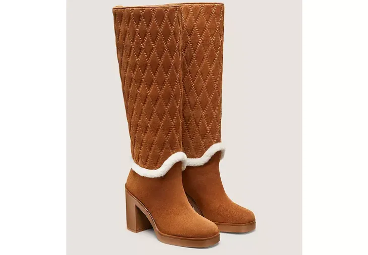 The CELIA QUILTED 80 BOOT features elevated details that showcase our signature Spanish craftsmanship, from its quilted shaft to its shearling piping trim. An 80-mm block heel further elevates the look, while its subtle platform ensures easy wearability as the temperatures drop.​