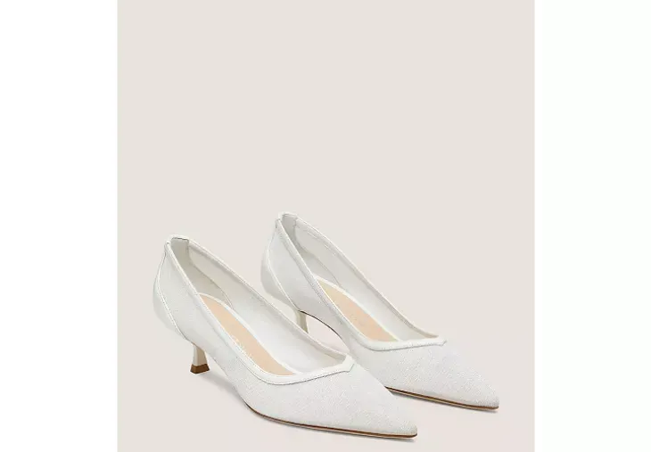The EVA 50 PUMP reimagines the classic pointed-toe pump with its V-cut vamp, a subtle yet striking detail that delivers a leg-lengthening effect. Crafted by our artisans in Spain on a wearable 50-mm heel, it taps into the kitten-heel look of the moment without sacrificing comfort.