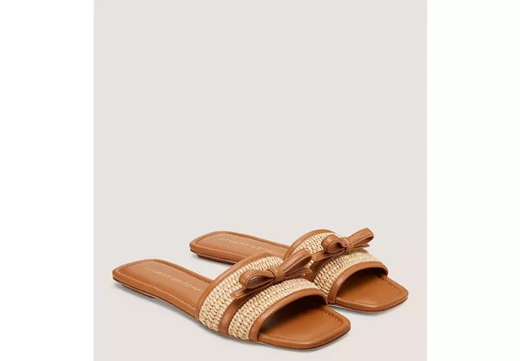 The FELICITY SLIDE is distinguished by a sleek bow accent on the upper. A modern square toe renders this flat sandal equal parts polished and laid-back.