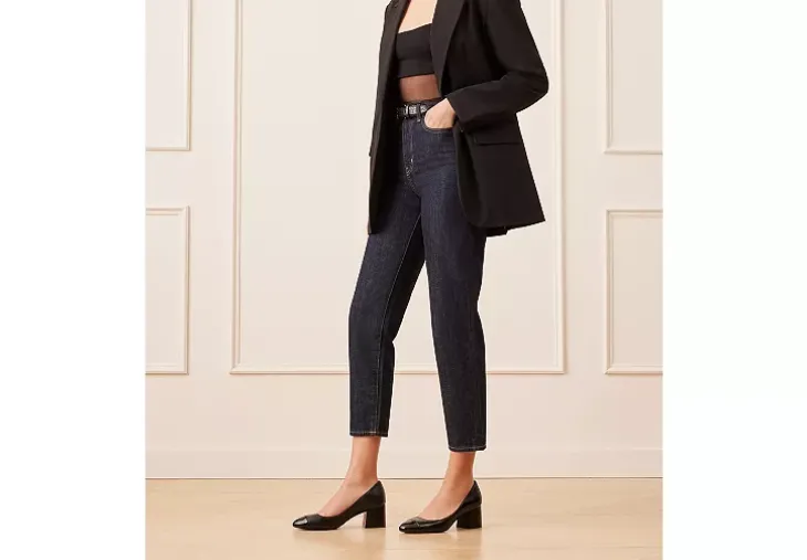 The timeless pump gets a modern touch with the FLAREBLOCK 60 PUMP. This cap-toe silhouette is crafted by SW artisans in Spain on a 60-mm flared block heel. Engineered with a wider base, this detail delivers a sculptural sensibility to the design while also offering extra wear-all-day comfort.