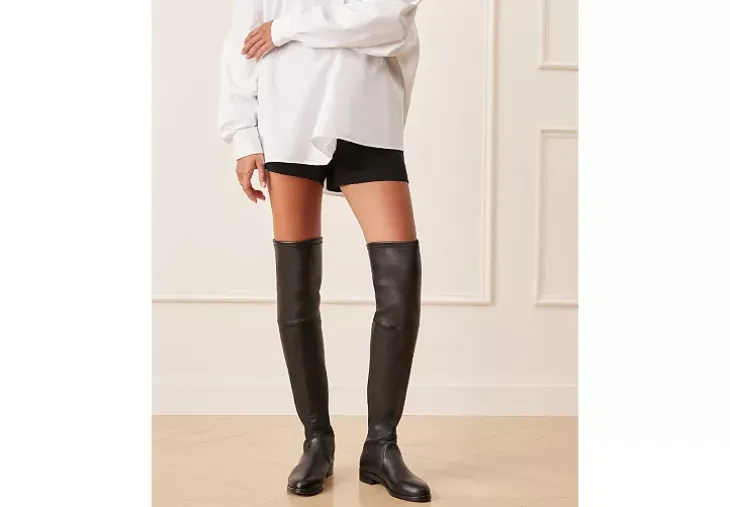 The LOWLAND boot is unequivocally one of our most-popular over-the-knee boots to date. Known around the world for its perfect fit, a feature that has since become synonymous with the Stuart Weitzman brand, this over-the-knee design is defined by our iconic stretch construction. Precisely cut from the most luxurious stretch-infused leathers or suedes this streamlined silhouette is a testament to the masterful craftsmanship of our artisans in Spain. It is finished with our signature tie back detail that can be adjusted for your own personalized fit around the thigh. Since its release, this look has continued to inspire new iterations each season, as seen in our LAND collection of stretch over-the-knee boots.