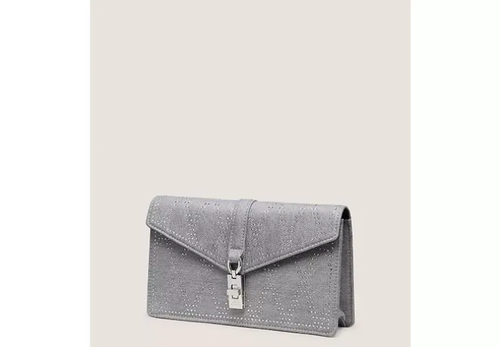The MILAN SHINE CLUTCH features a polished twist lock accent and crystal embellishments, each meticulously placed by SW artisans. Its spacious single gusset construction opens to reveal four interior card slots, while its detachable chain strap enables it to also be worn as a crossbody bag, if you choose.