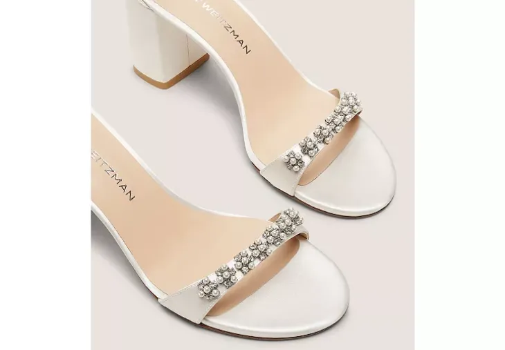 The NUDIST POPPY BLOCK 75 delivers a glamorous riff on our iconic block-heel NUDIST. Crafted by SW artisans in Spain, it is detailed with crystal- and pearl-embellished floral details and finished with a comfortable 75-mm block heel.