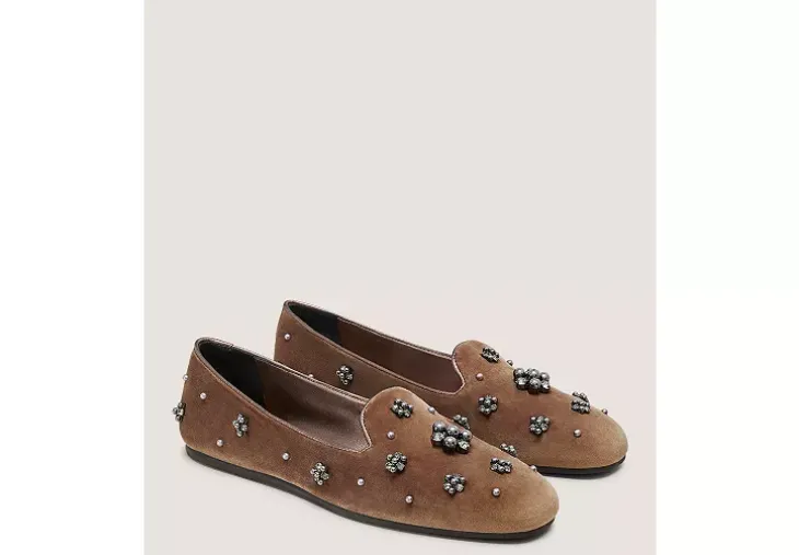 The POPPY LOAFER delivers our modern, feminine take on the classic smoking slipper. Defined by elegant floral details, each intricately adorned with hand-soldered crystals and pearls, this sleek flat stands to elevate any outfit, day or night.