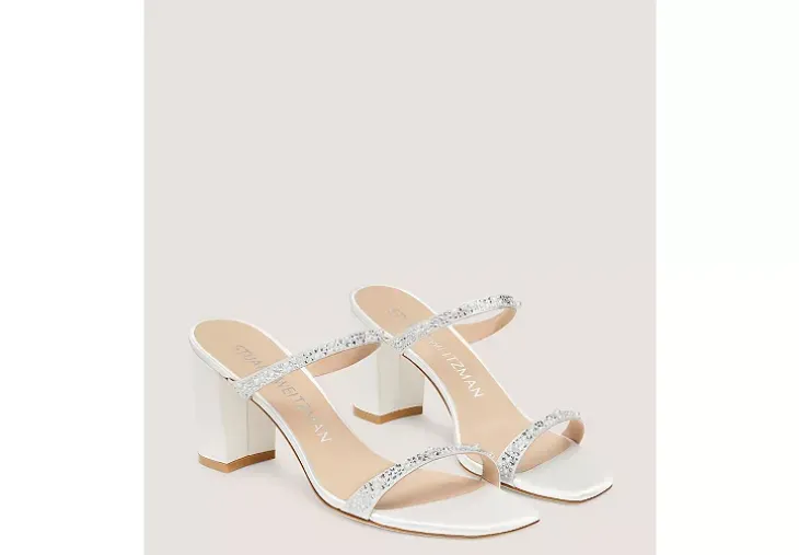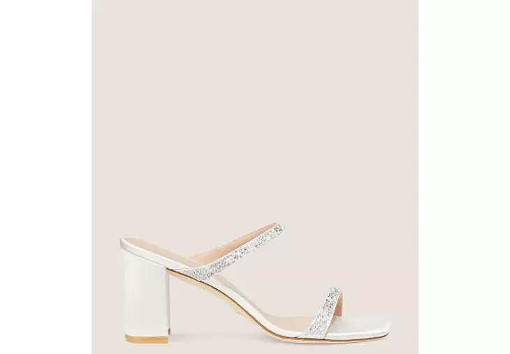 The ROYALE PEARL 75 BLOCK SLIDE pairs a timeless, minimalist silhouette with strikingly opulent details: It features approximately 900 crystal and pearl embellishments, each meticulously hand-placed and individually inspected to ensure a flawless end result. Crafted by SW artisans in Spain, it features modern square toe and a wearable, 75-mm block heel that delivers dance-all-night comfort.