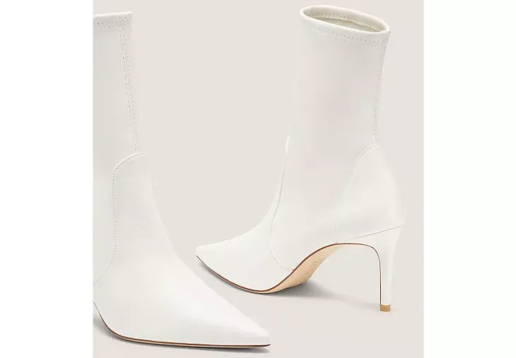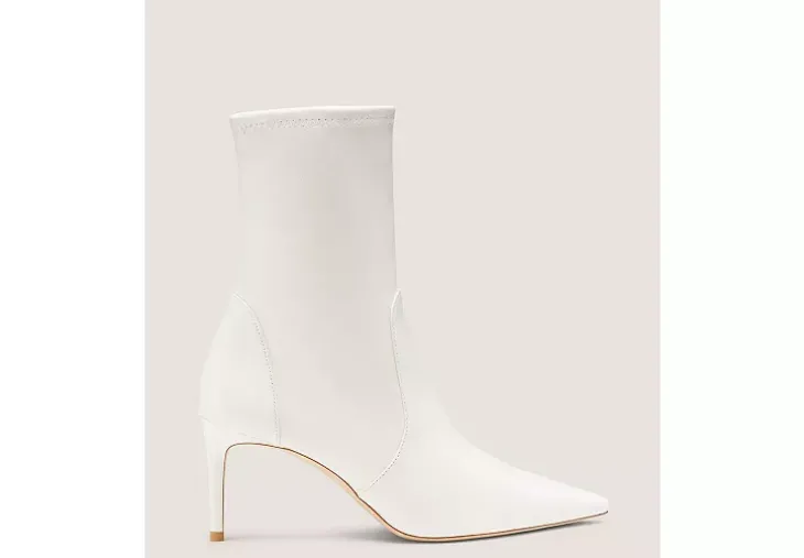 The STUART POWER BOOTIE 75 delivers an even-sleeker, extra comfortable update on our iconic pointed-toe STUART sock bootie design. Crafted by SW artisans in Spain, it features a reimagined construction for improved stability, a 75-mm stiletto heel that’s placed on a subtle angle for increased support and a new shock-absorbing insole for even more wearability.