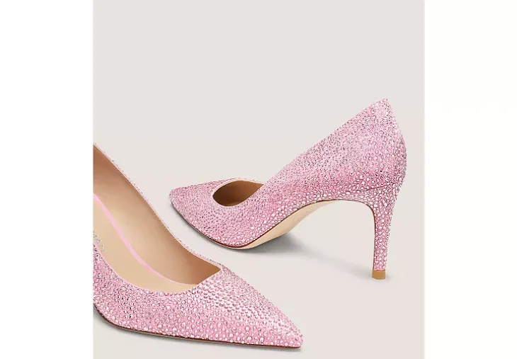 The limited-edition STUART POWER SHINE pump, created in collaboration with Swarovski, delivers a high-shine, high-glam take on our new icon, the STUART POWER 75 pump. Meticulously crafted by our expert artisans in Spain, each pair is adorned with over 6,000 tonal Swarovski pavé crystals. This silhouette features a modernized construction for maximum style and comfort, including a reworked 75-mm stiletto heel set on a subtle angle for extra support. Make every step striking in this dazzling pump.