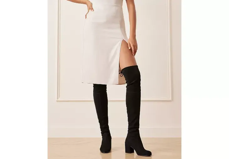 The TIELAND over-the-knee boot takes our iconic flawless-fit stretch boot construction to the next level: Crafted by our artisans in Spain from supple stretch-infused leathers or suedes, it features a style-elevating 70-mm block heel that does not sacrifice comfort. Meanwhile, our signature tie back accent enables it to be adjusted for an even-more personalized fit around the thigh. It is this distinctive detail that renders this silhouette part of our world-famous LAND collection of all-over stretch boots.