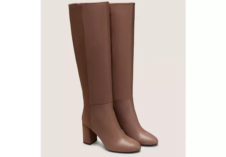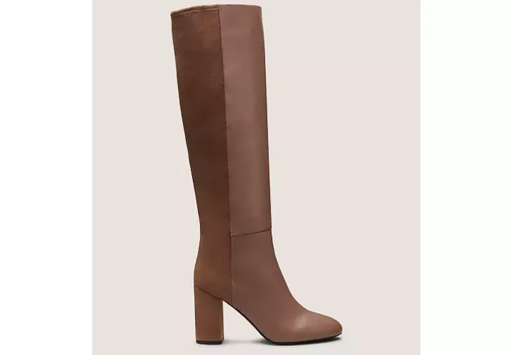 The 5050 STRUT BLOCK BOOT takes cues from our iconic 5050 mixed-material boot with its half-leather, half-suede design. Crafted by SW artisans in Spain, this knee-high boot is finished with an 85-mm block heel for a wearable lift that works with practically any outfit.