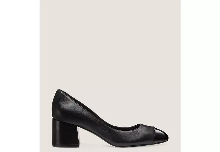 The timeless pump gets a modern touch with the FLAREBLOCK 60 PUMP. This cap-toe silhouette is crafted by SW artisans in Spain on a 60-mm flared block heel. Engineered with a wider base, this detail delivers a sculptural sensibility to the design while also offering extra wear-all-day comfort.