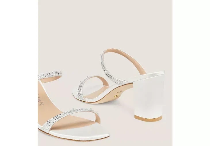The ROYALE PEARL 75 BLOCK SLIDE pairs a timeless, minimalist silhouette with strikingly opulent details: It features approximately 900 crystal and pearl embellishments, each meticulously hand-placed and individually inspected to ensure a flawless end result. Crafted by SW artisans in Spain, it features modern square toe and a wearable, 75-mm block heel that delivers dance-all-night comfort.